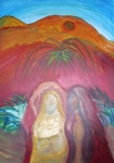 2014Lekker vanuit de rust met Jezus dit schilderij gemaakt, op een zonnige dag in de tuin. Later laat God me Zacharia 13 zien met als boodschap: Er komt rust in het beloofde land, want het zwaard treft de Herder. Er is dus genade op genade. Afgoden zullen verwijderd worden en valse profeten zullen zich voor zichzelf schamen en niet langer proberen om Gods volk te bedriegen. (ook Ezechiel 47)