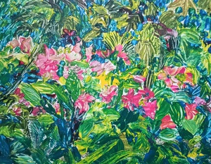 2004Een hele uitdaging om een mooie bloem weer weg te schilderen om die vervolgens weer terug te halen. Een training in abstractie.